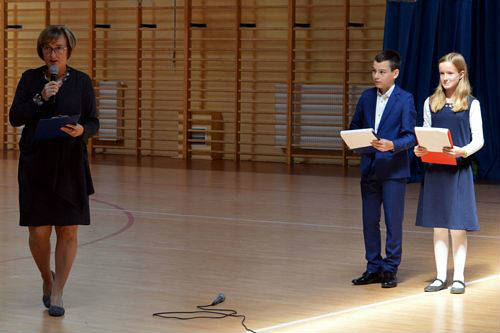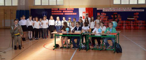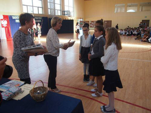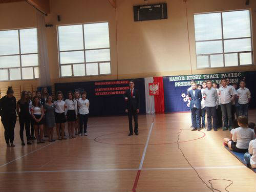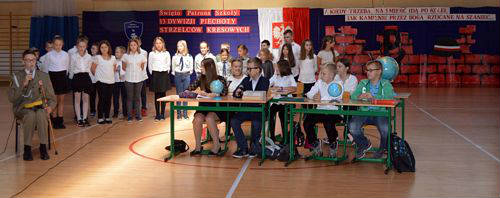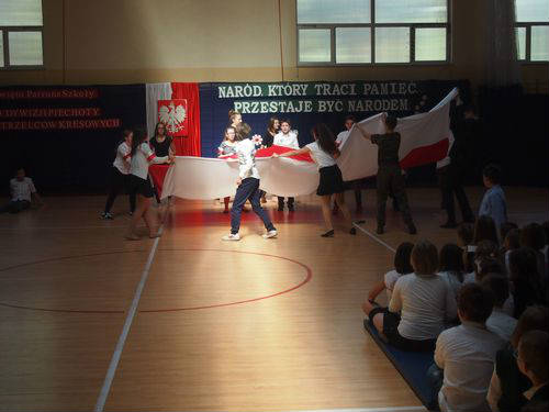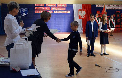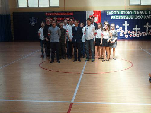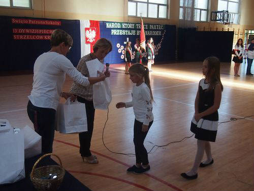 W szkole uczniowie klas najmłodszych 1-3 uczestniczyli w biegu historycznym przygotowanym przez p. Renatę Królak oraz uczniów klas III gimnazjum. Podczas krótkiej akademii przygotowanej przez p. Ewę Araźną i p. Urszulę Gibas oraz uczniów klas V b, VI a i III gimnazjum pani dyrektor Maria Maciak wręczyła nagrody za konkurs wiedzy o patronie szkoły, konkurs literacki i plastyczny oraz za bieg historyczny. Tradycyjnie, na zakończenie uroczystości wszyscy uczestnicy zostali poczęstowani wyśmienitą grochówką, przygotowaną przez panie ze szkolnej kuchni.